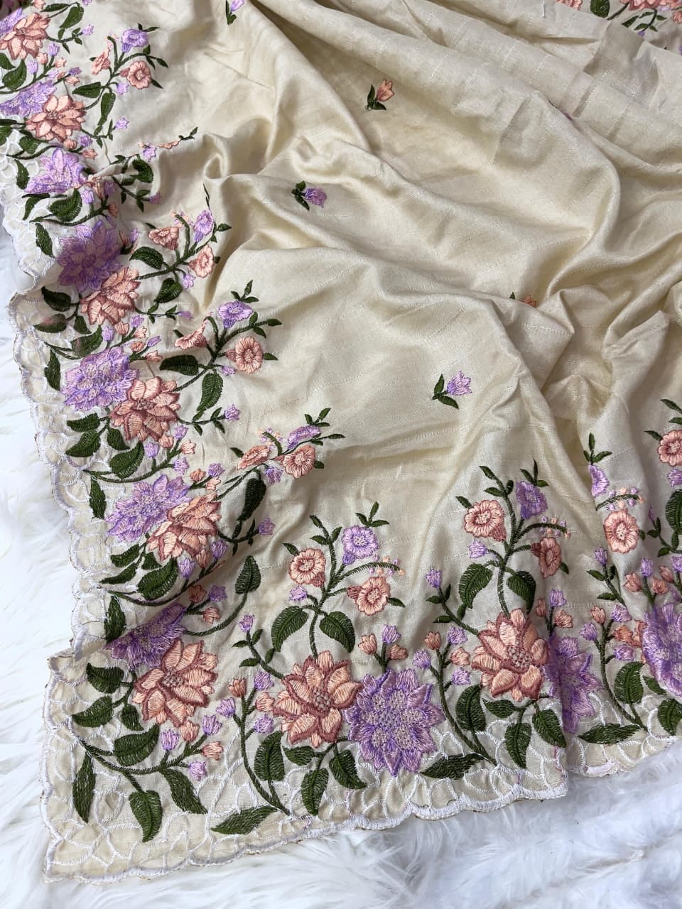 Pure soft matka silk saree with beautiful embroidery work borders nd buttis in all over saree with aarco.