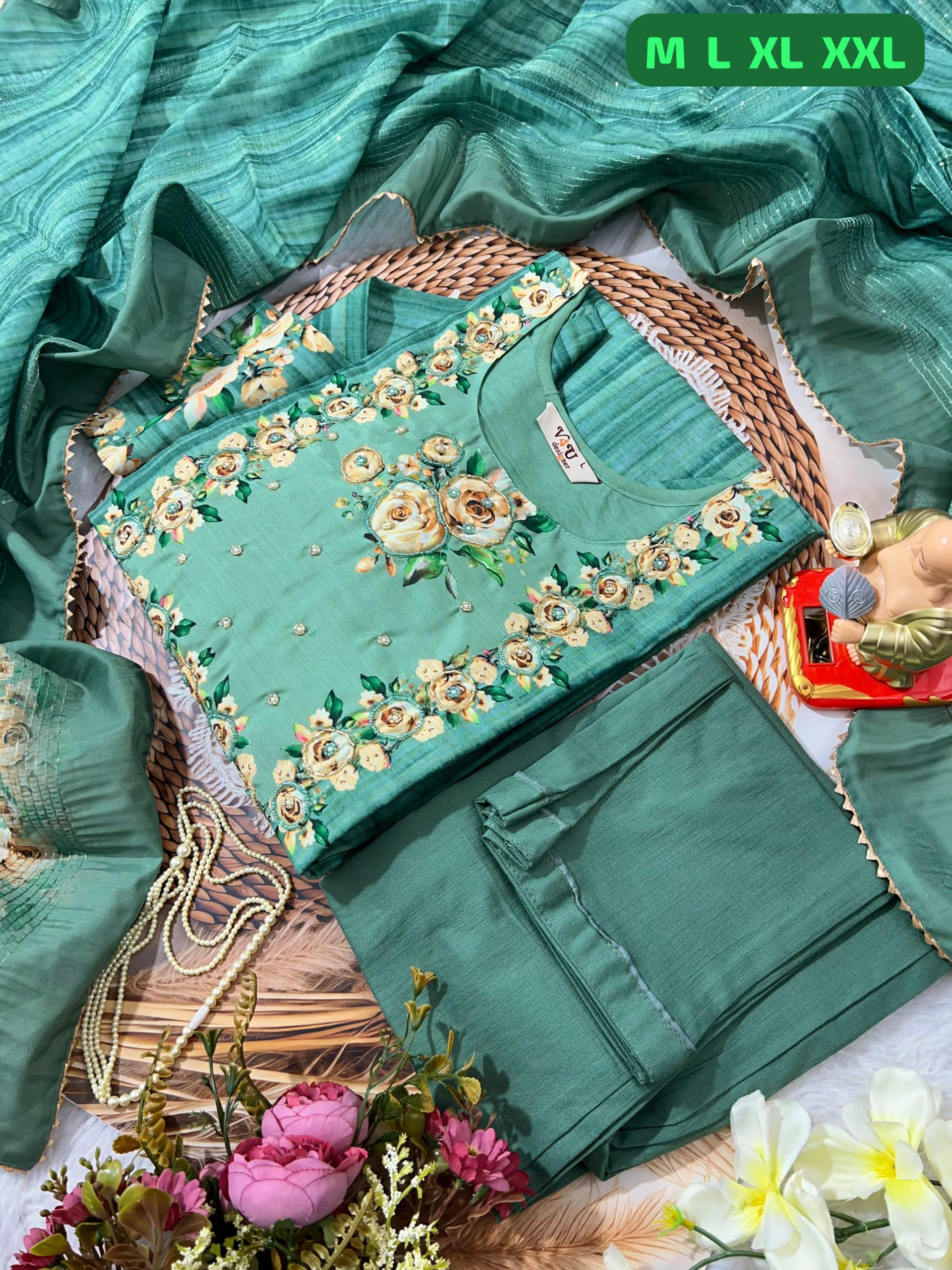 HAND WORK KURTI WITH PRINT WITH HAND WORK DUPATTA PENTS SET