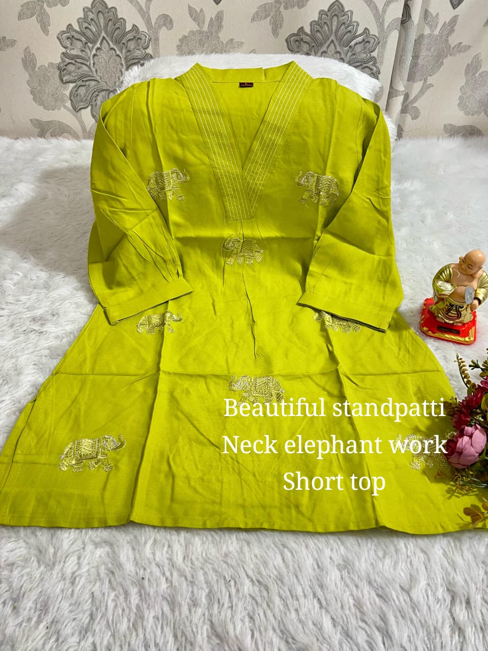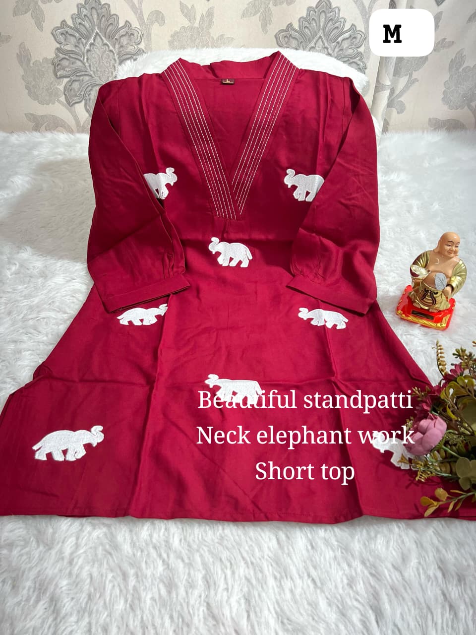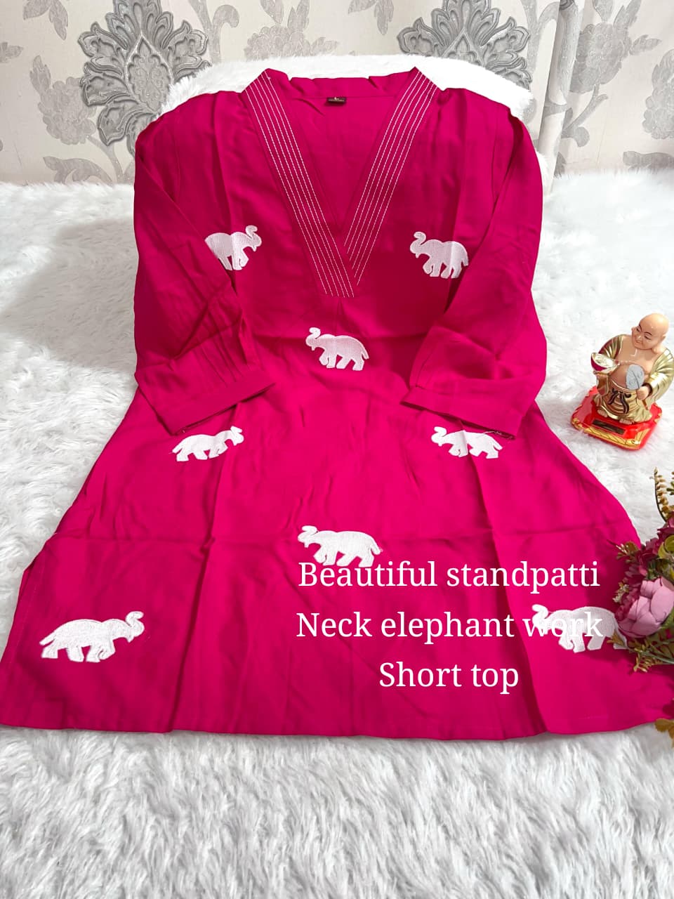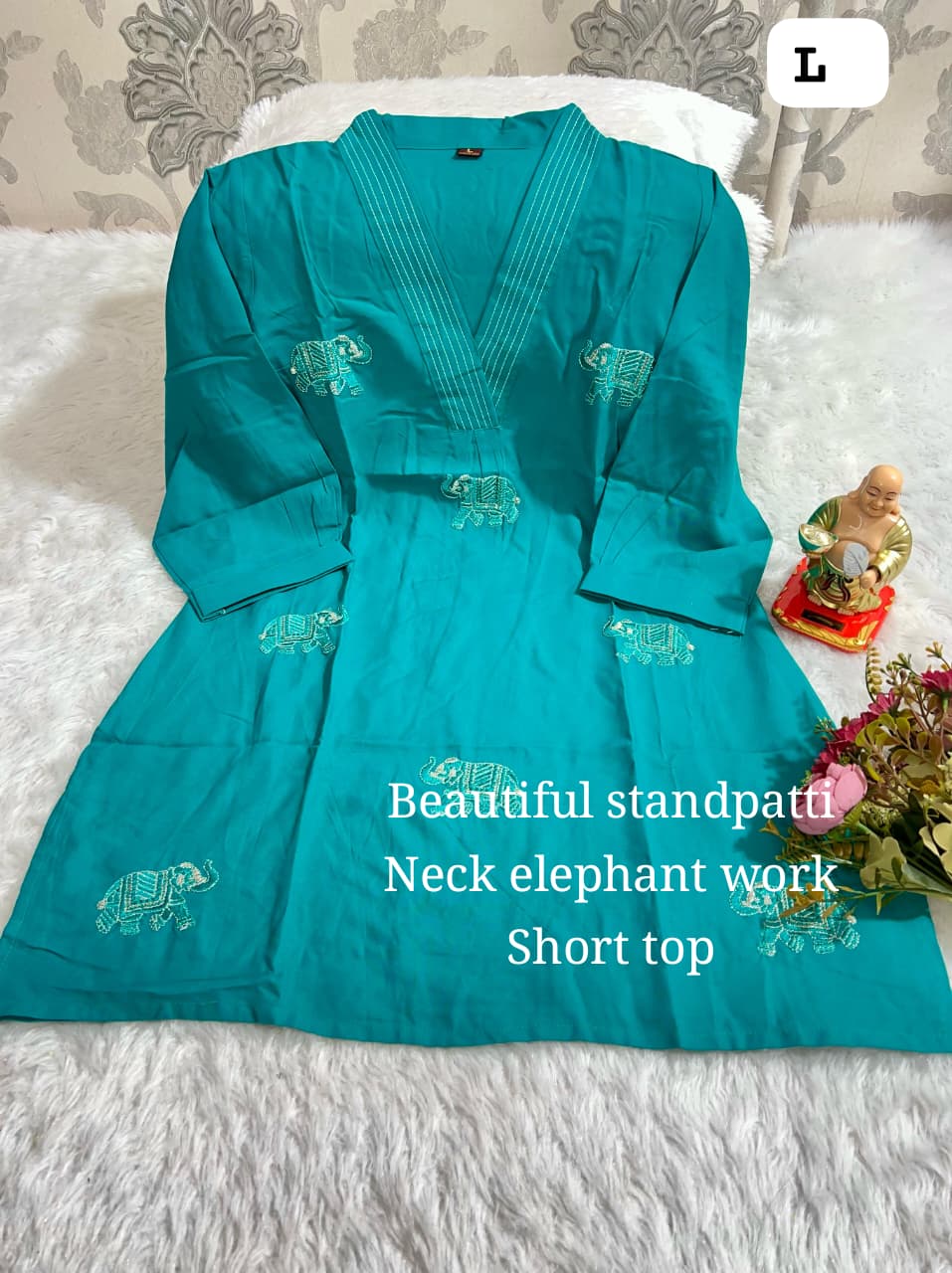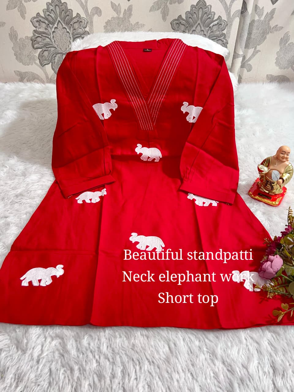 Pure Soft Roman Cotton Designer Top With V Neck Pattern Attached With Beautifull Work