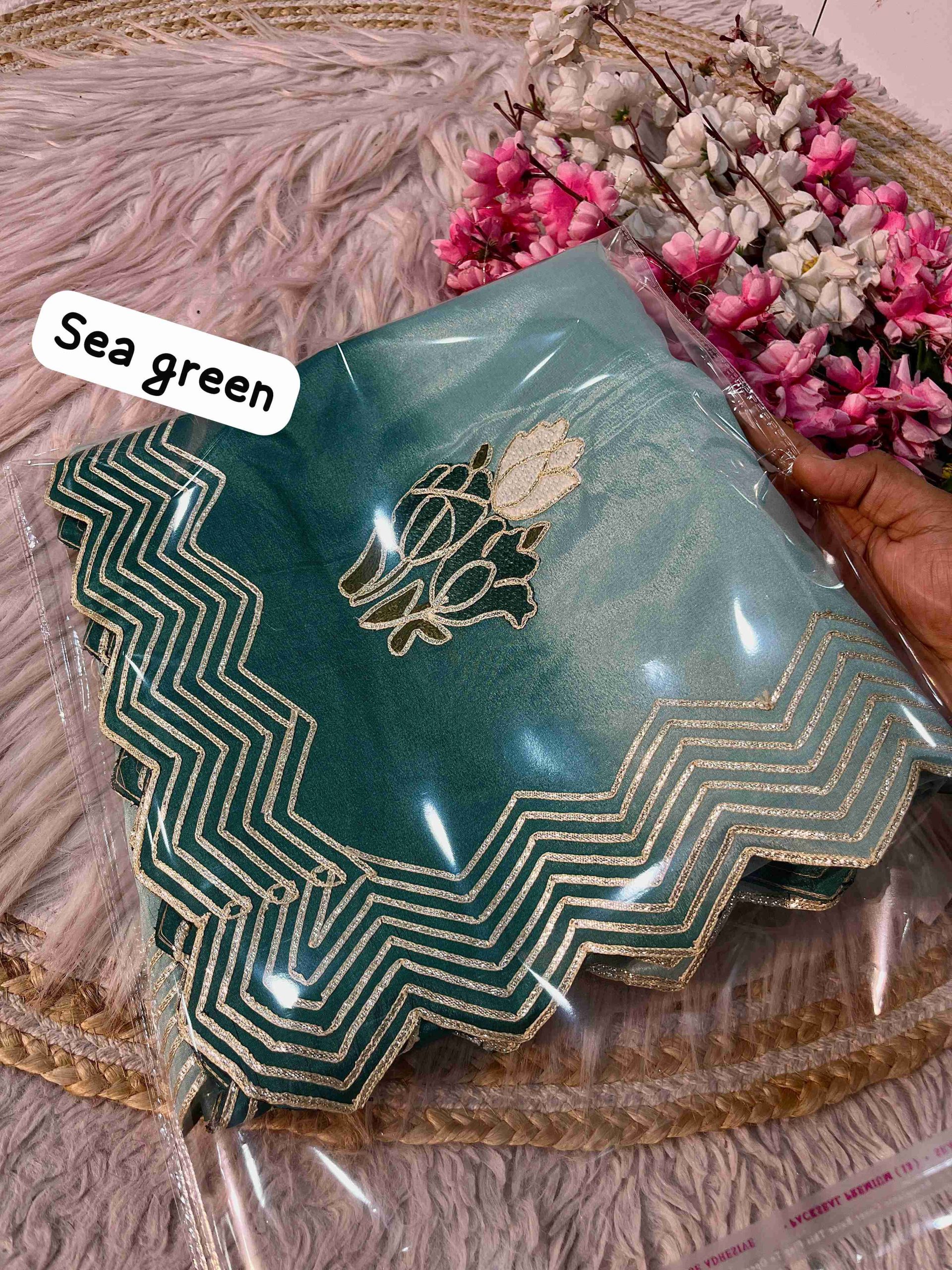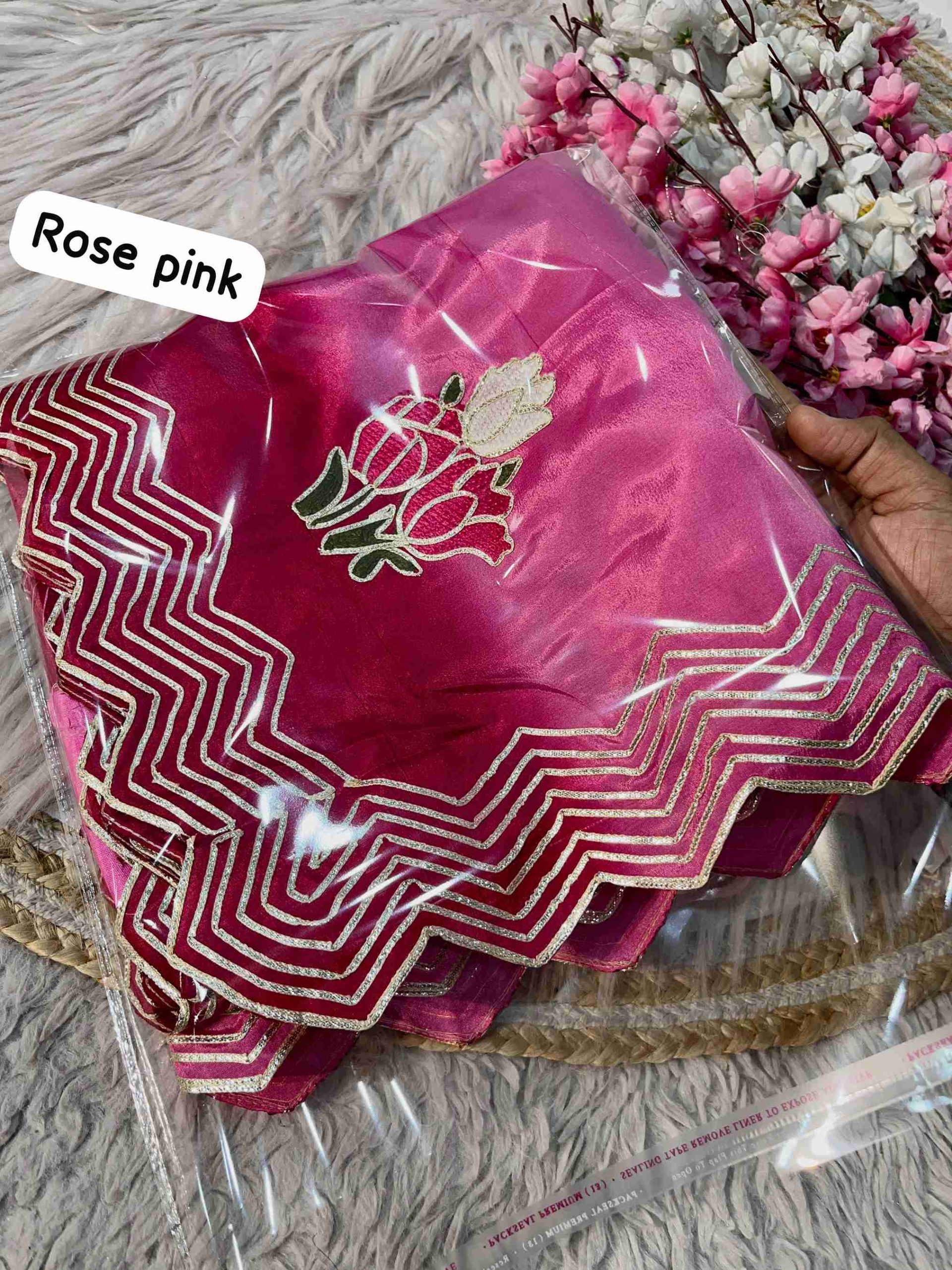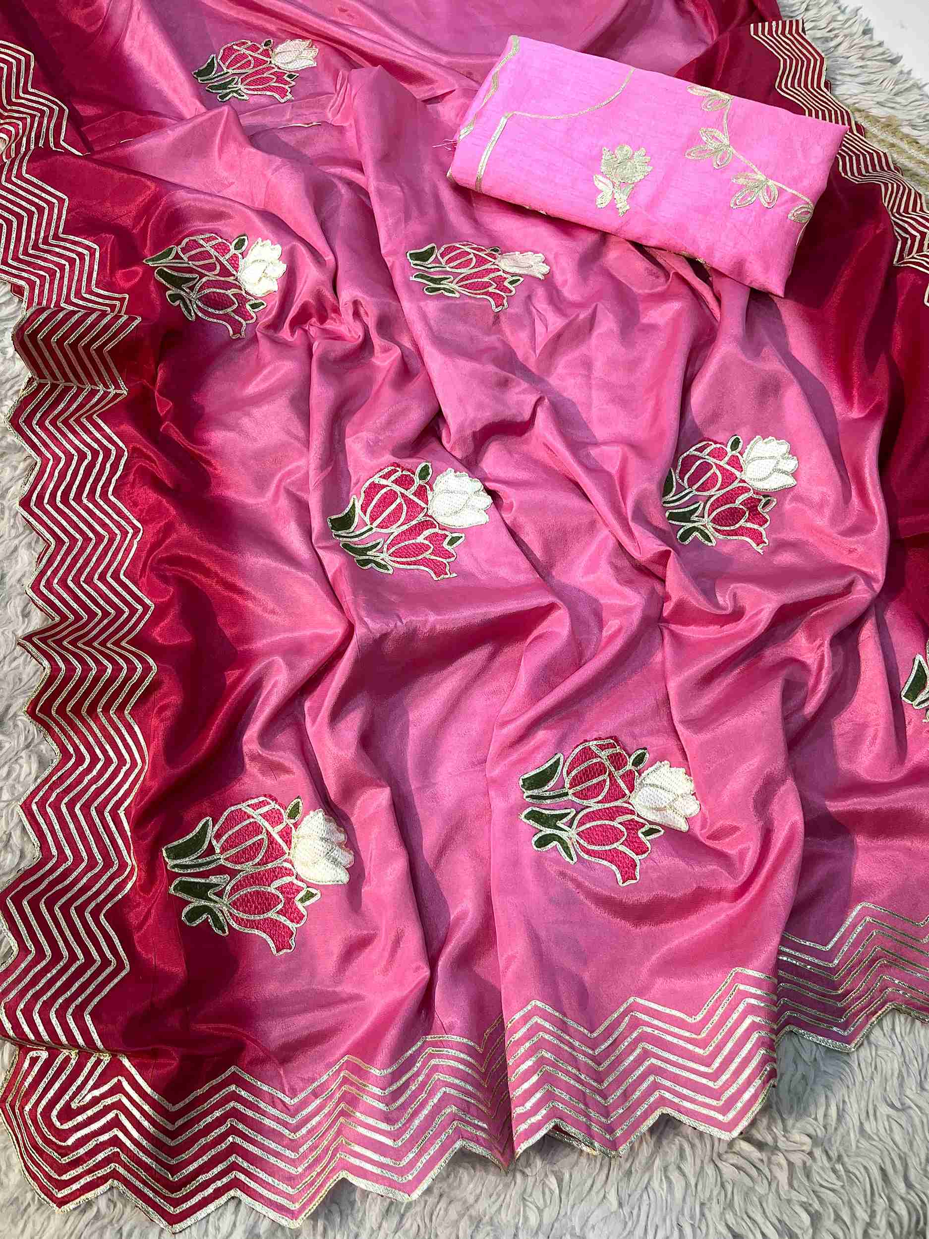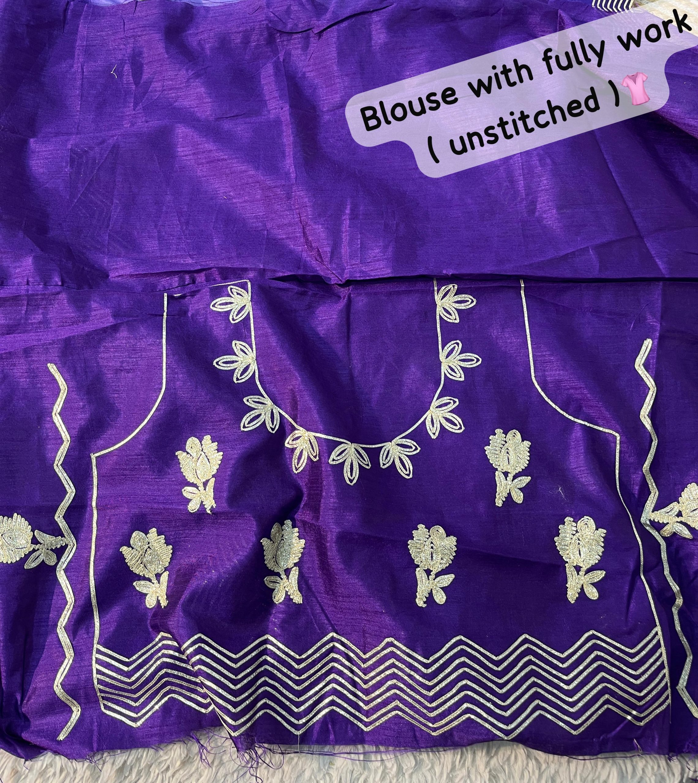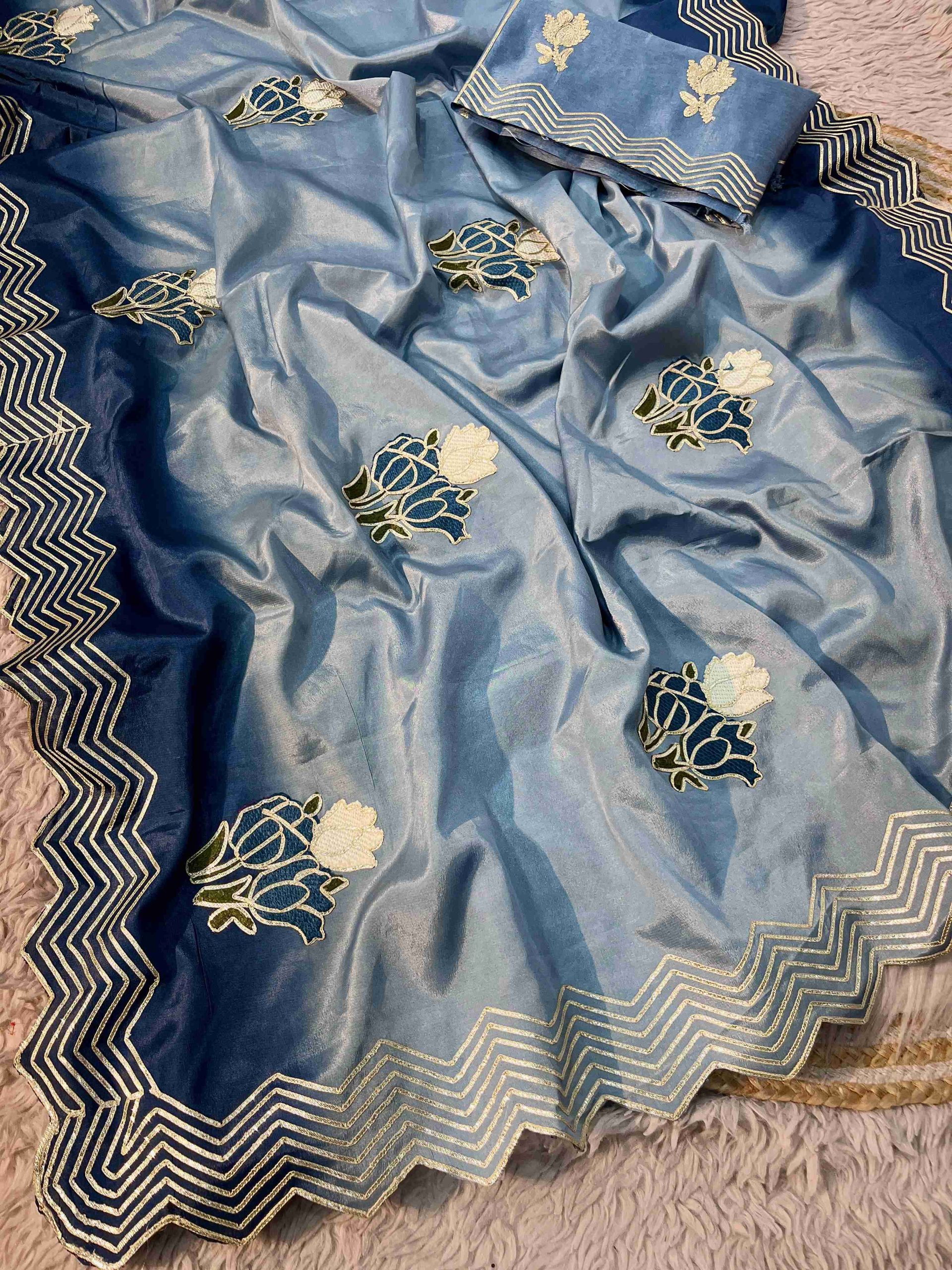 Work: Heavy C-pallu ribbon gotapatti multi-work, butta throughout the saree, and rich look cutwork border, adding an elegant touch