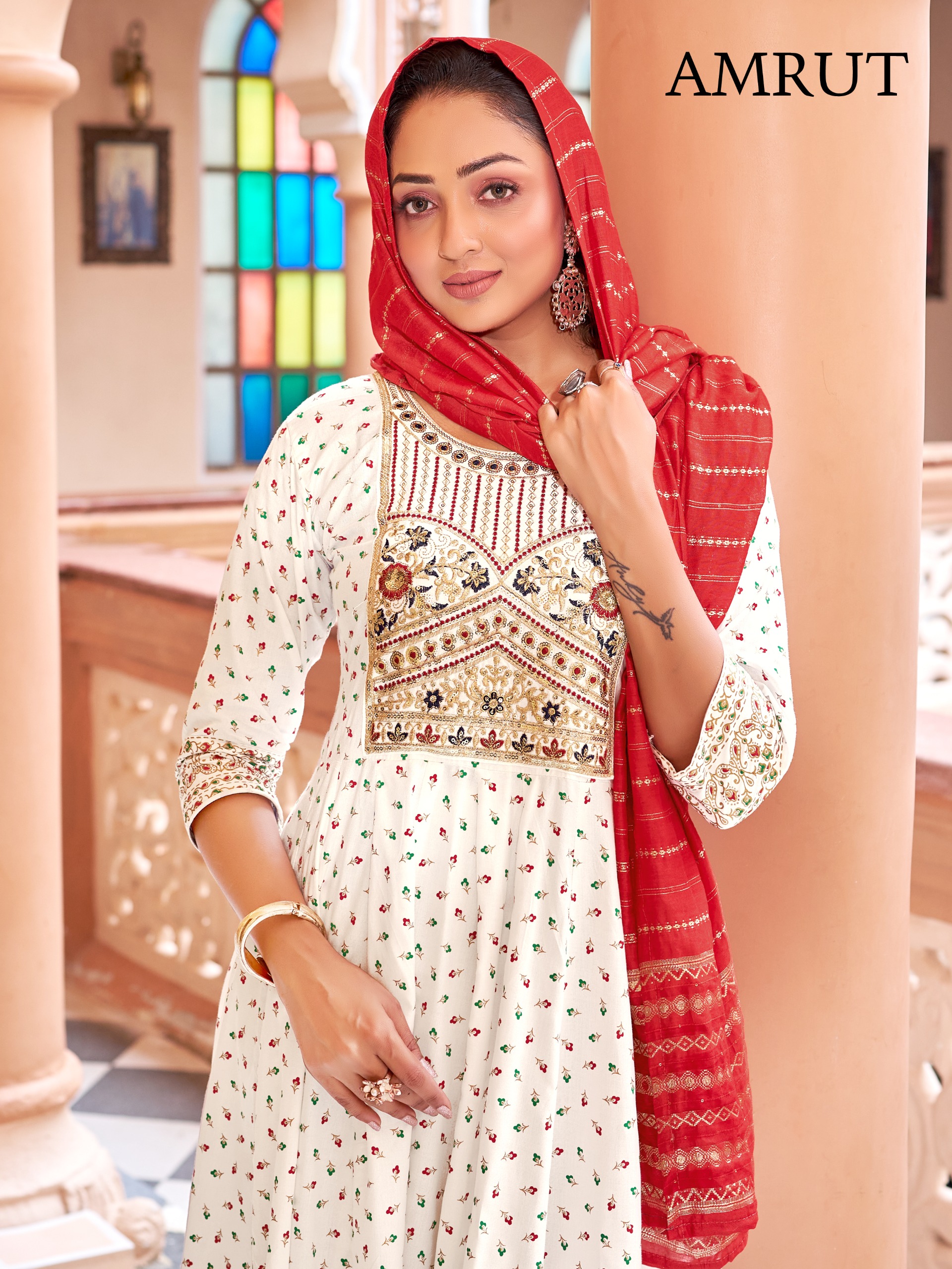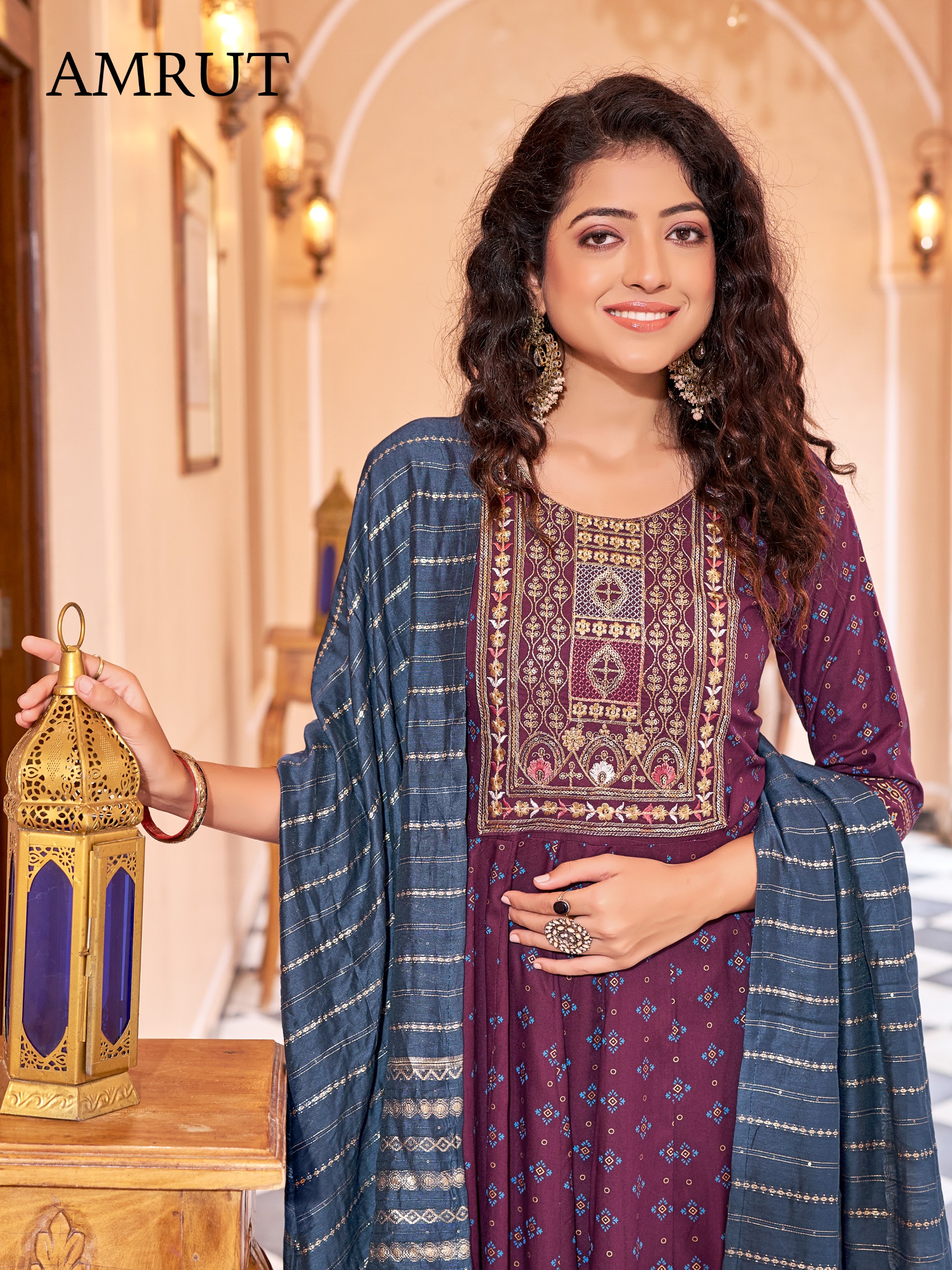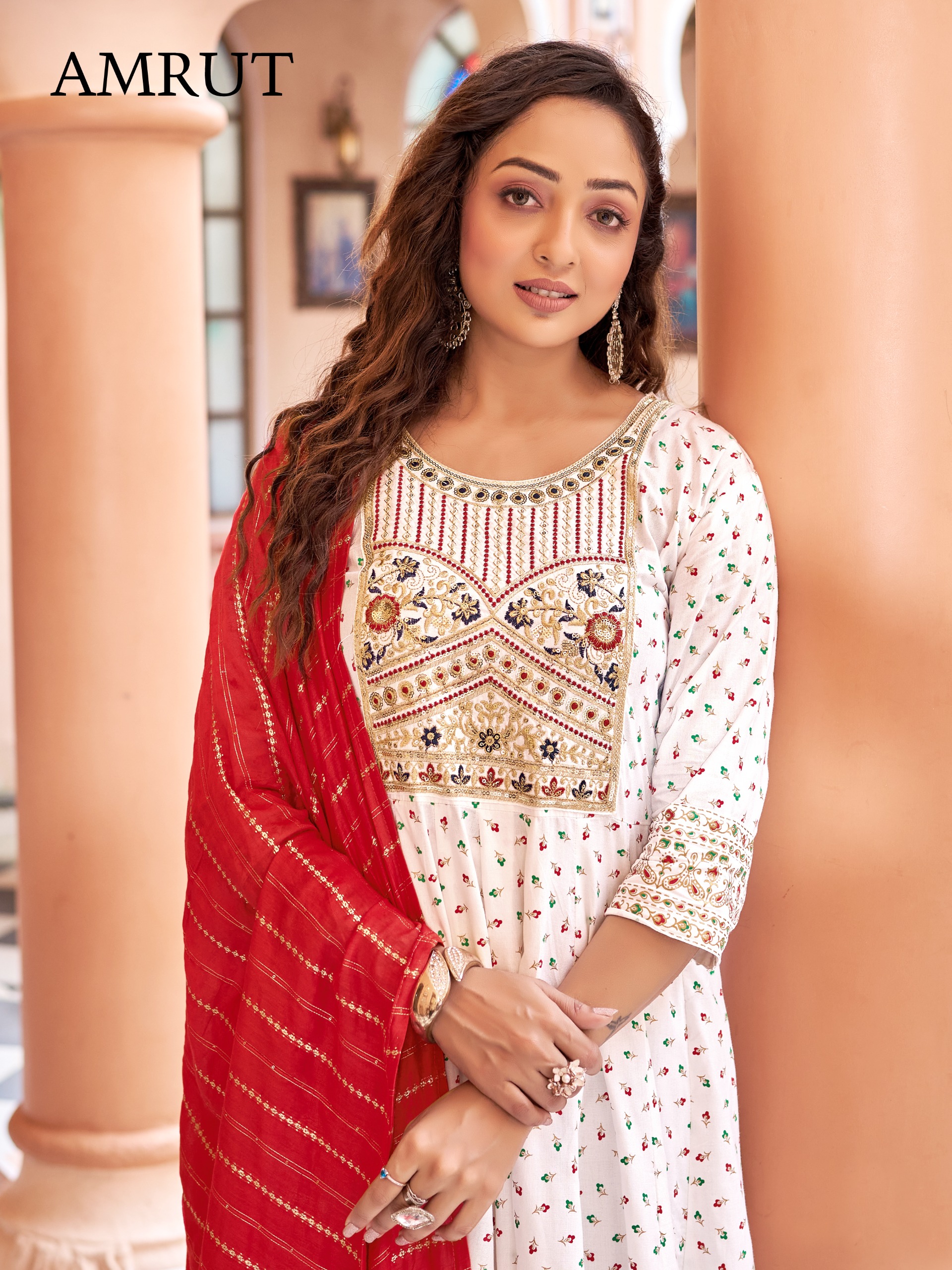 GOWN :- 14KG RAYON WITH HEAVY SEQUENCE EMBROIDERY WORK WITH COLOR FOIL PRINT