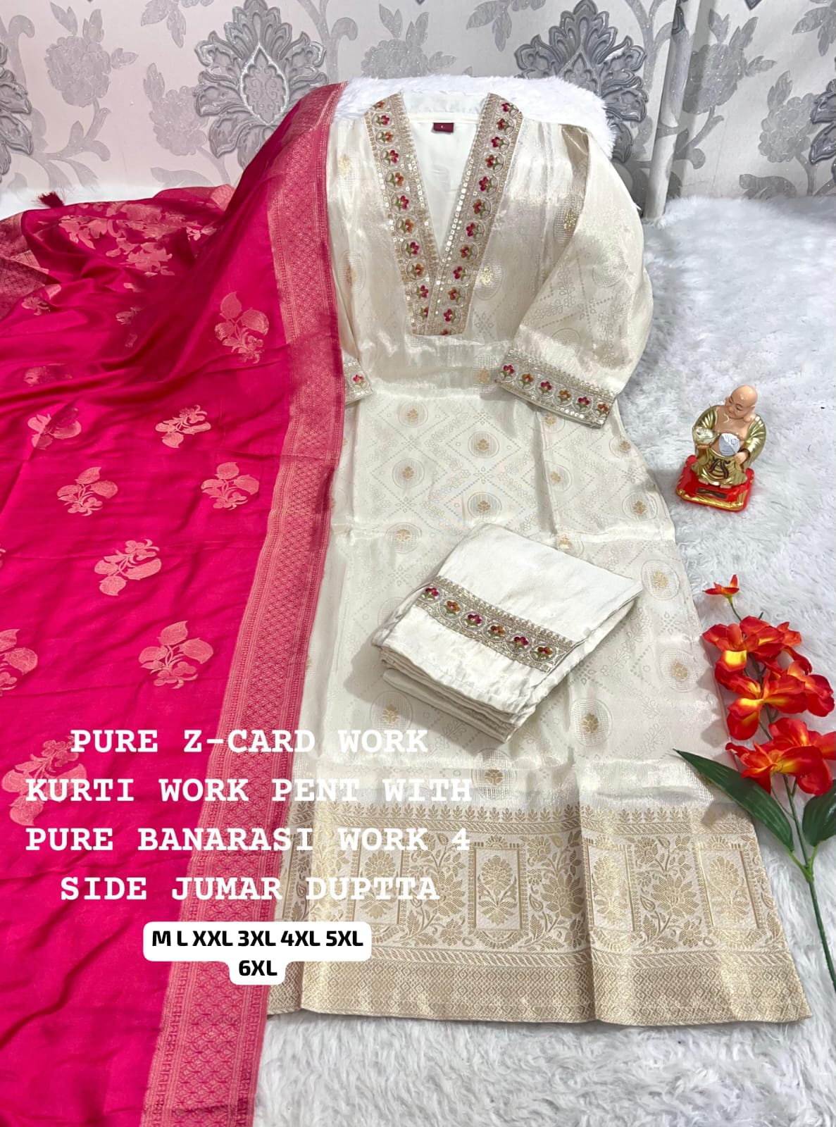 Wedding special And weeding vibes special Look straight out of a dreamy movie set as you turn around and walk in this elegant SImmer jaquard silk (attached fully silk inner) hand premium work suit.. the perfect blend of traditional wear and chic design.