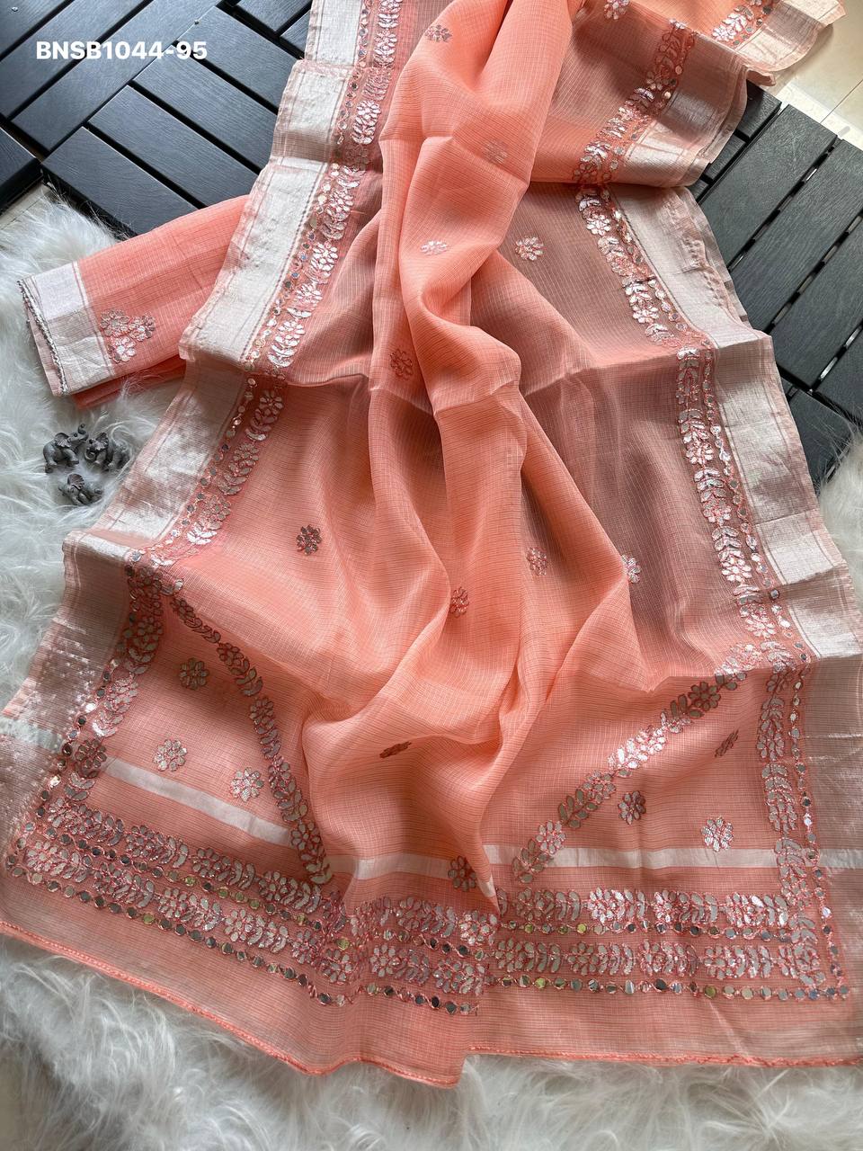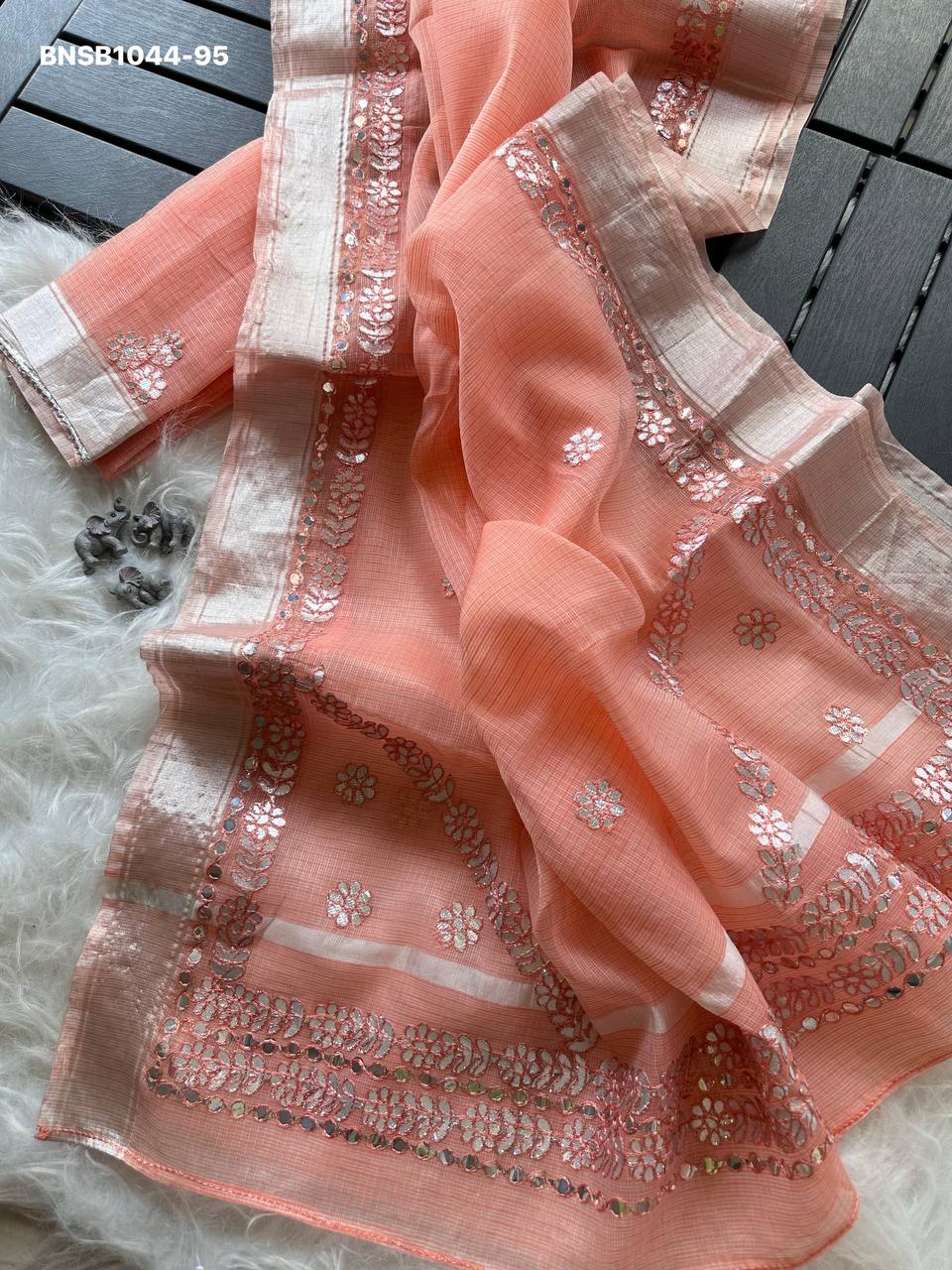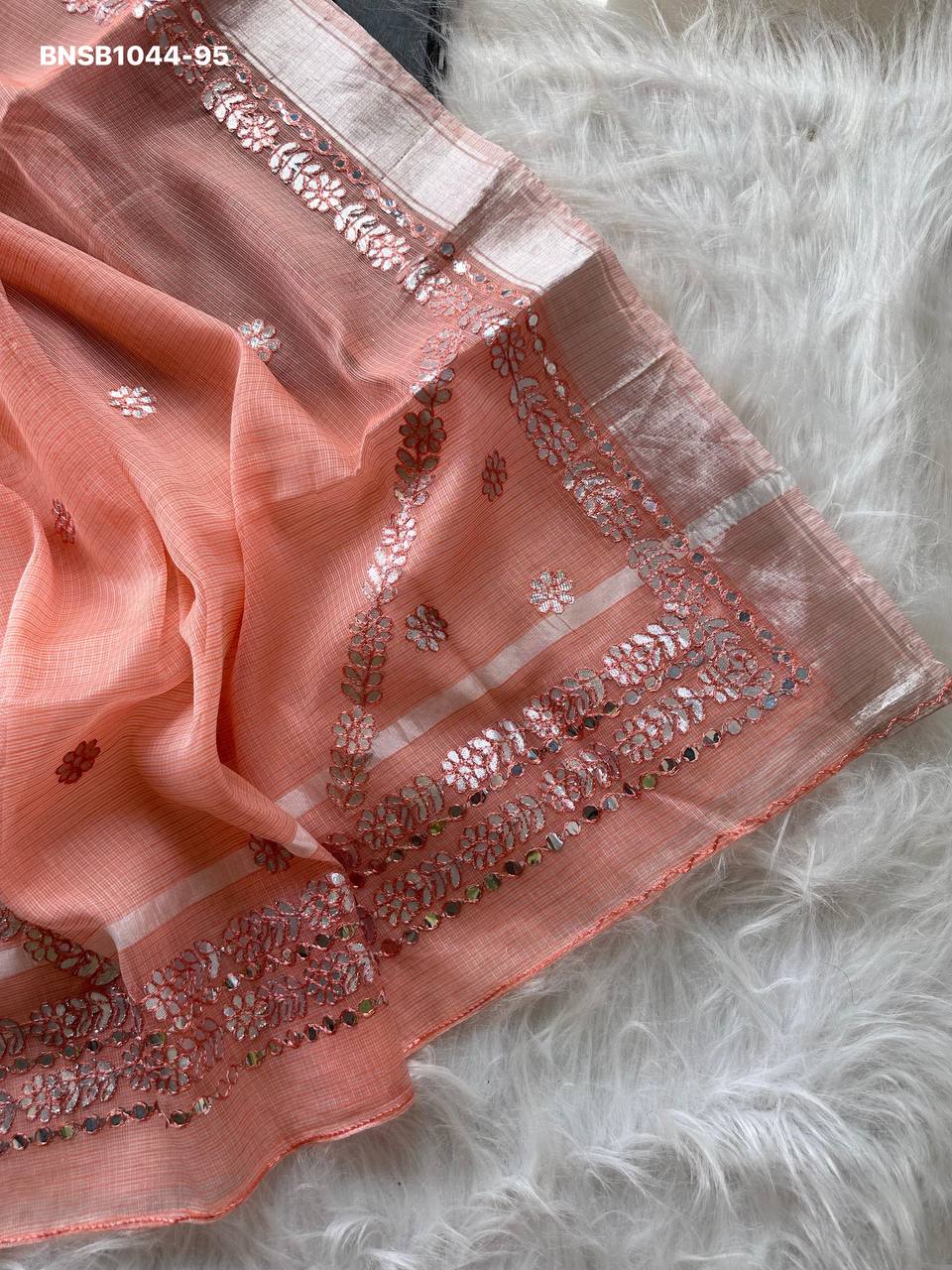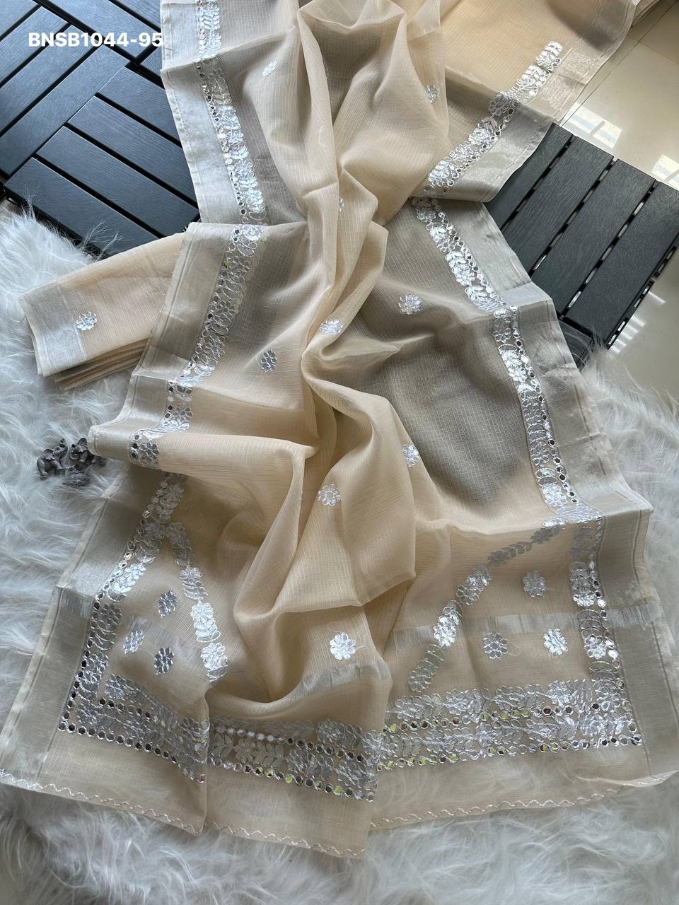 Superb Soft Kota doriya fabric with zari chex fabric with beautiful rajasthani gotapatti work in saree
