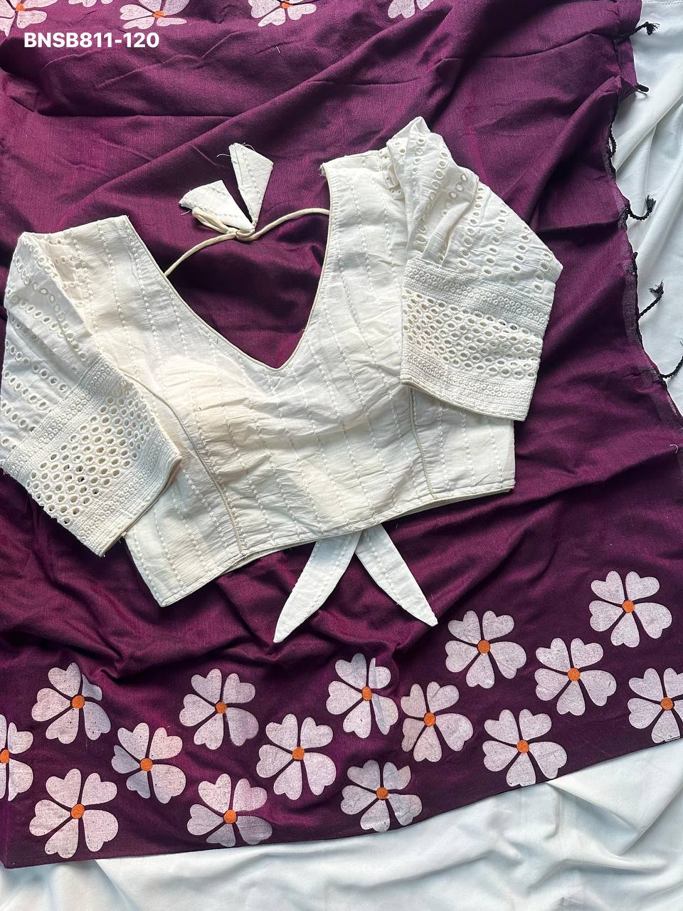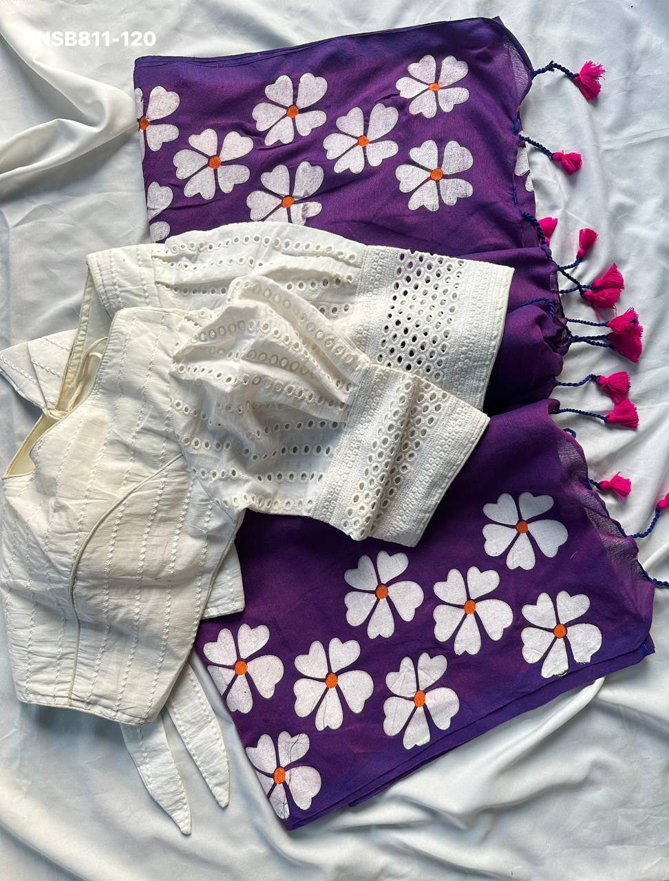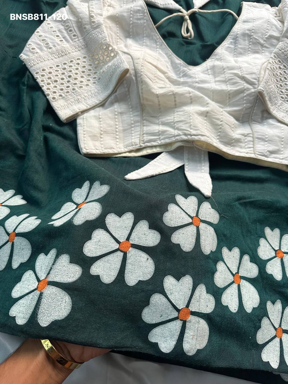 *Presenting a original Khadi cotton saree with flowers print And Havy khadi Cotton hakoba Beautiful Blouse*