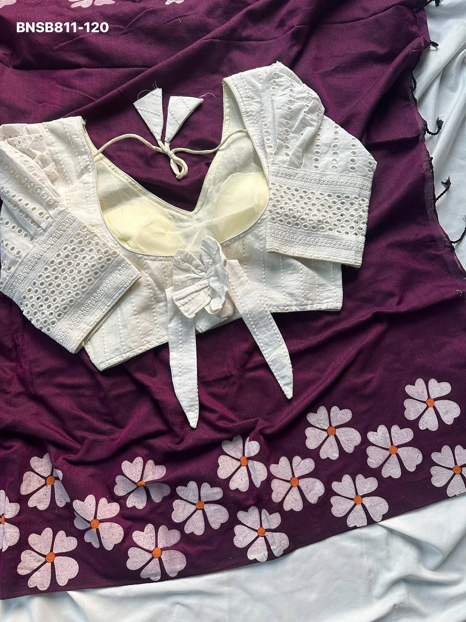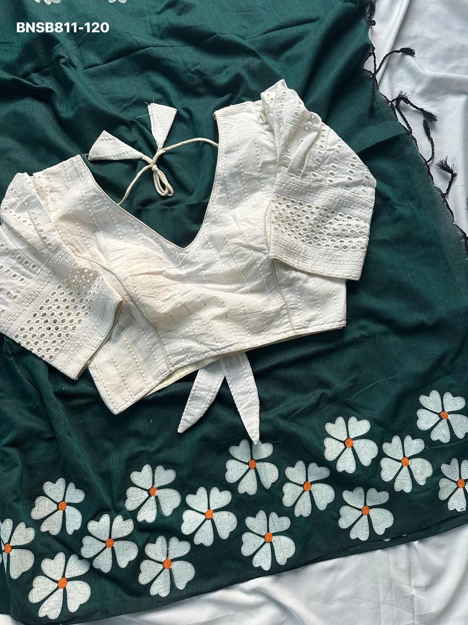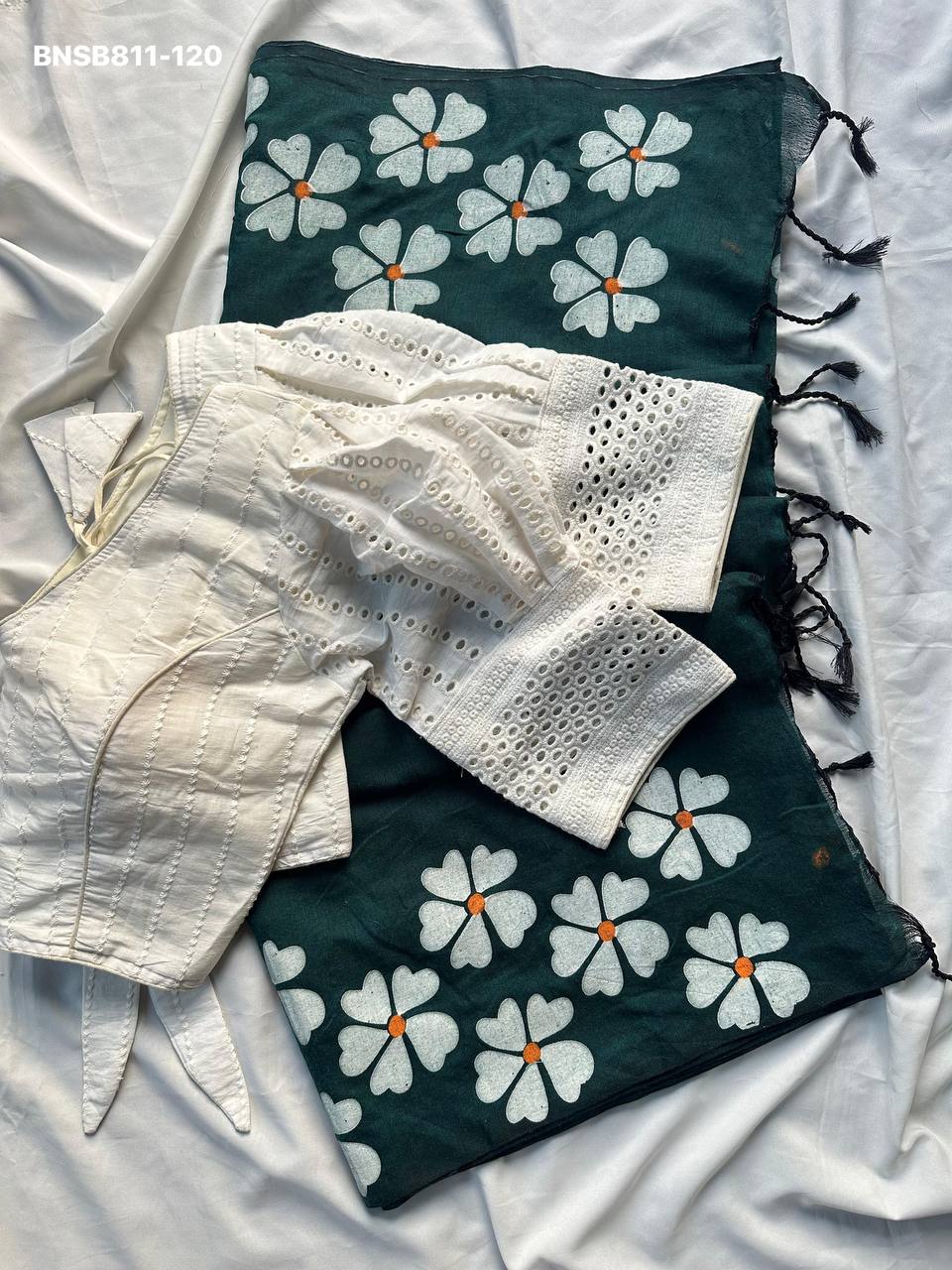 *Presenting a original Khadi cotton saree with flowers print And Havy khadi Cotton hakoba Beautiful Blouse*
