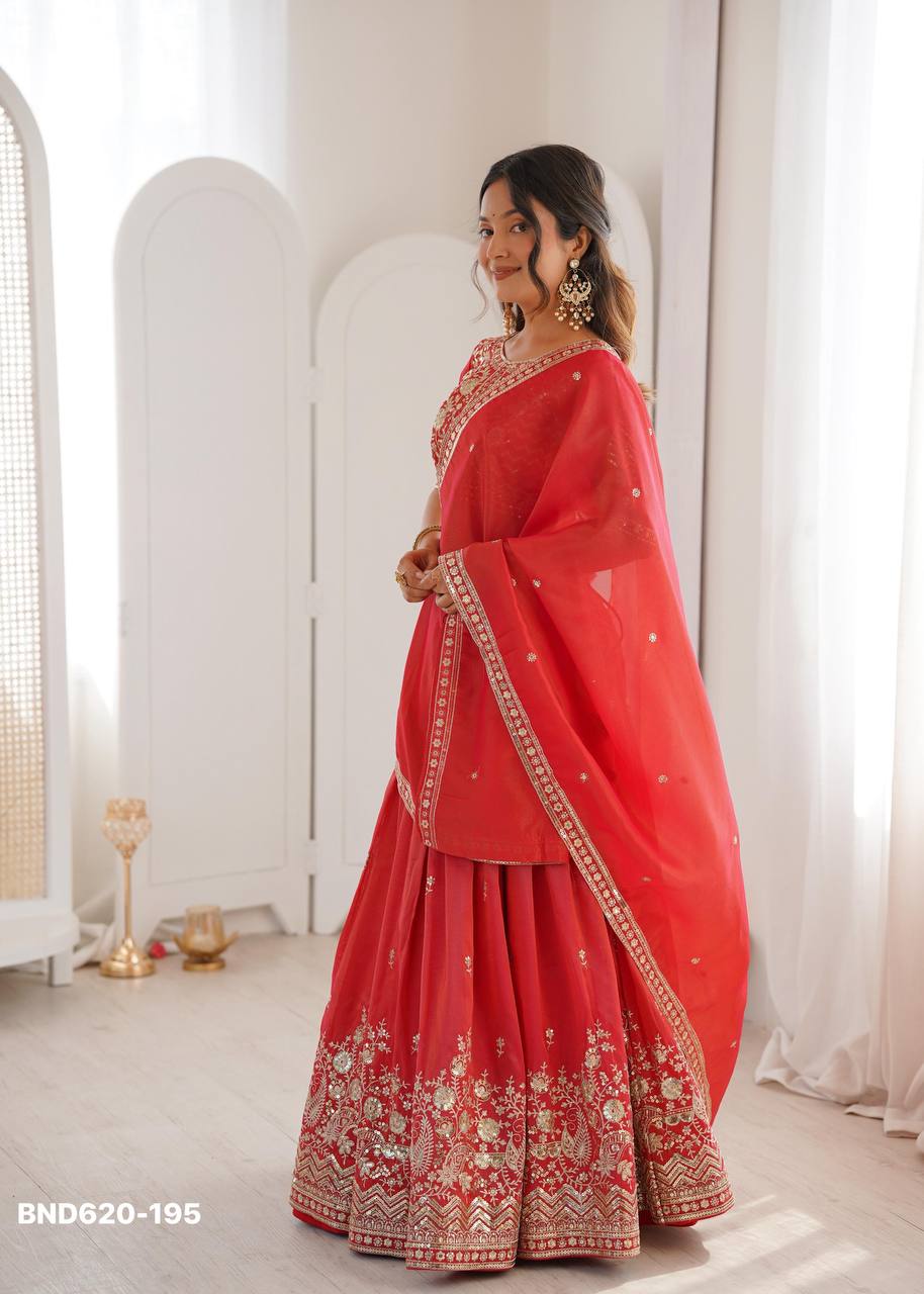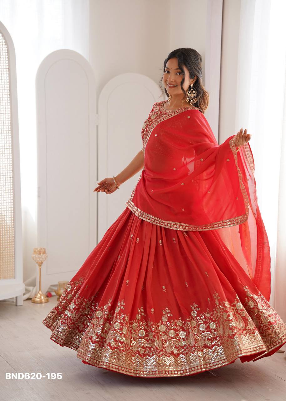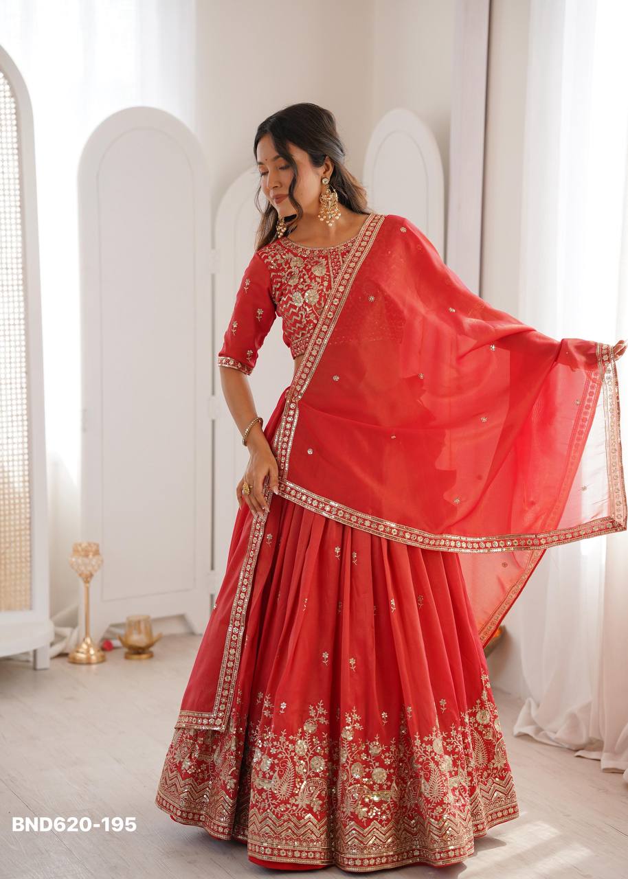 Latest Designer Heavy Indian Outfit Simmer Silk with Thread & Sequence Work Lehenga Choli & Dupatta Set