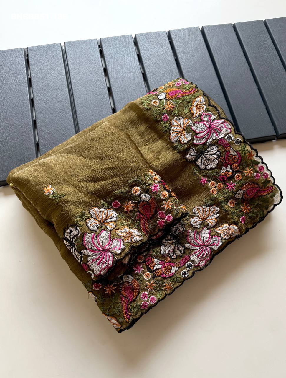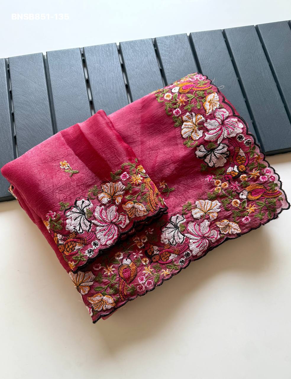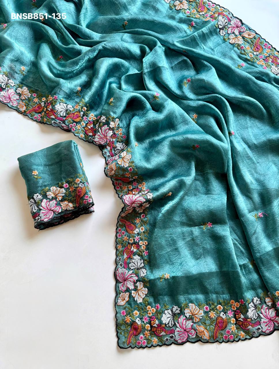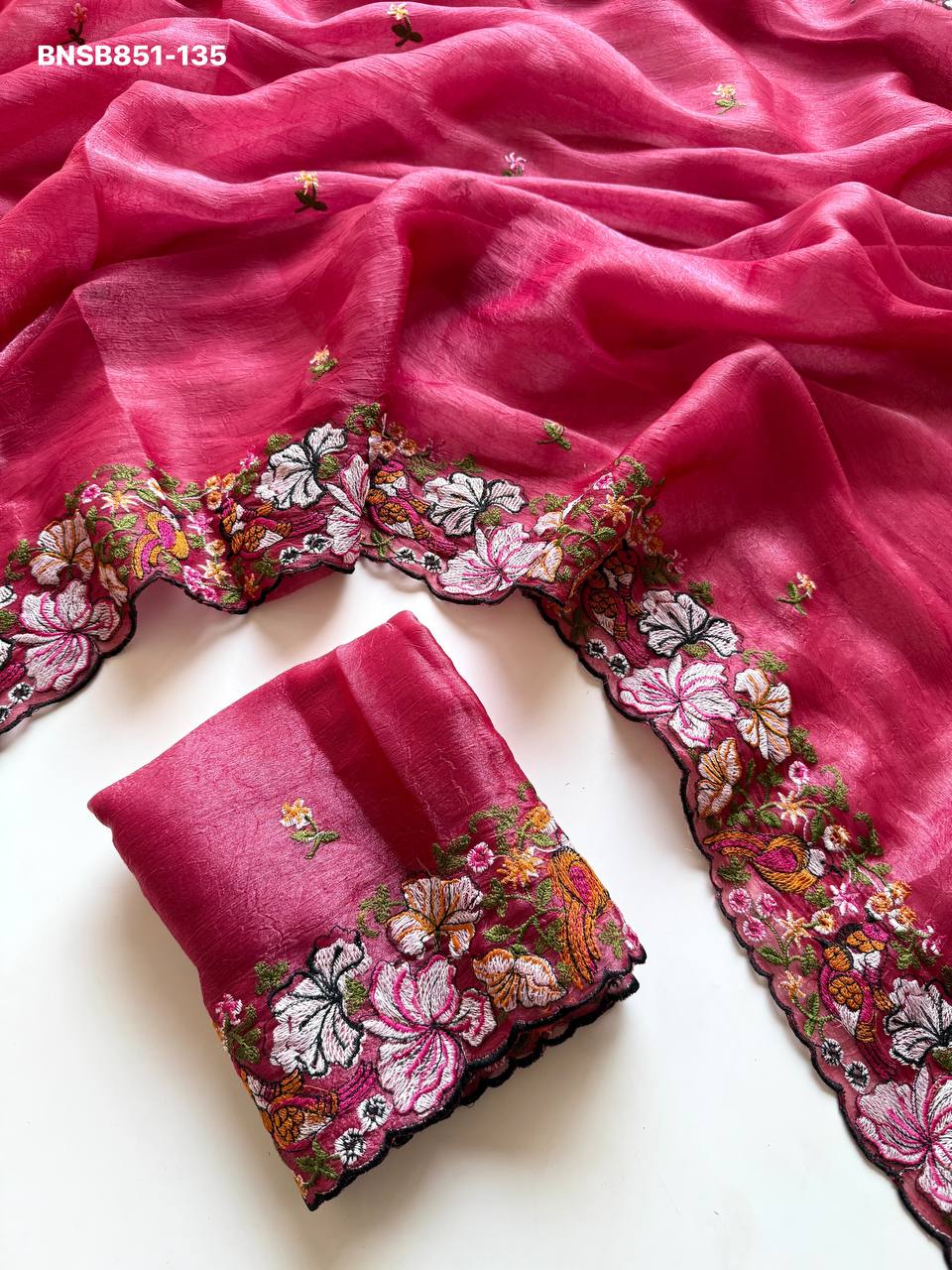 *Pure Alexa Crush Saree with premium floral embroidery all over the Saree with cut work embroidery Border*