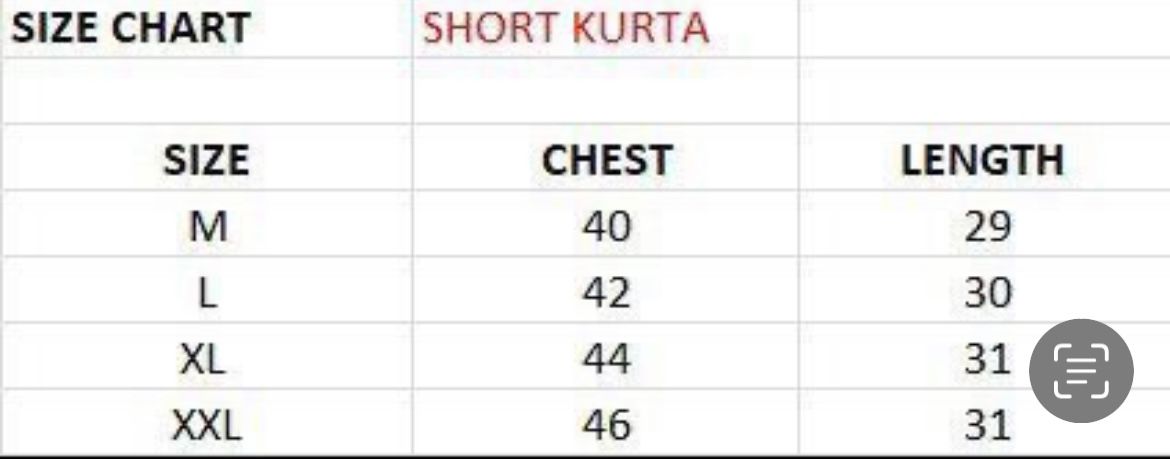 Size chart given