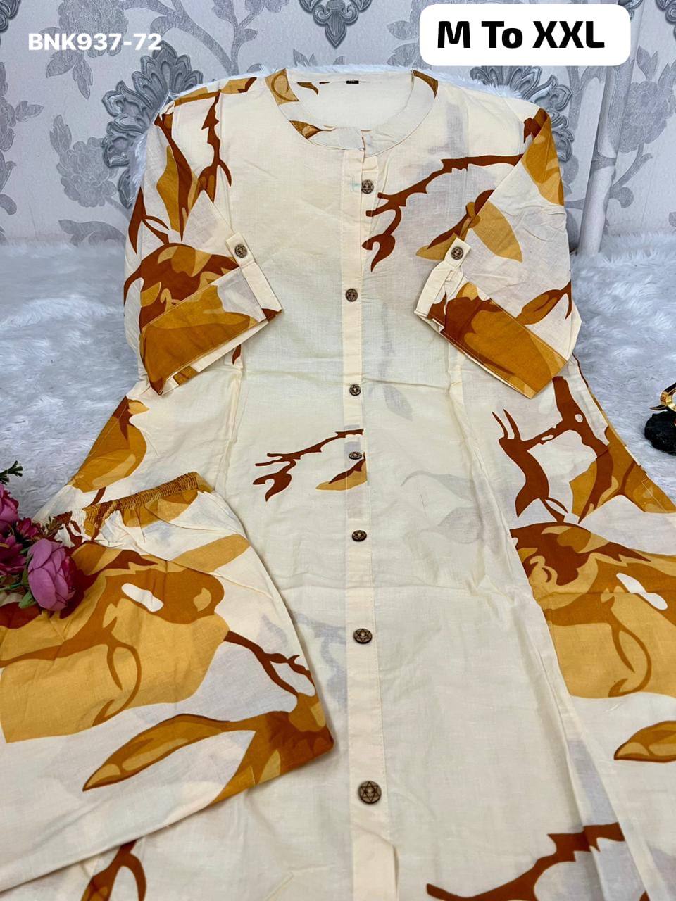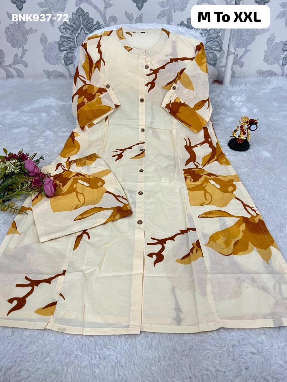 Premium Quality Trending Ocassional Wear Cotton with Printed Work Kurti-Pant Co-ord Set