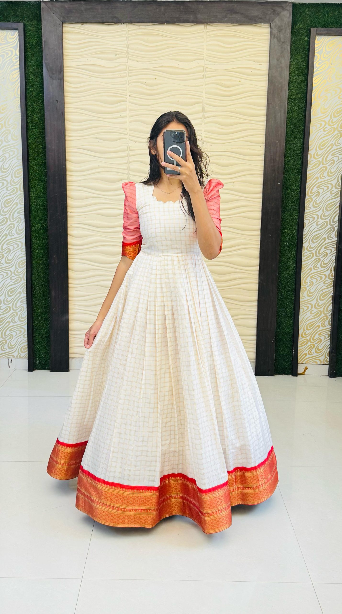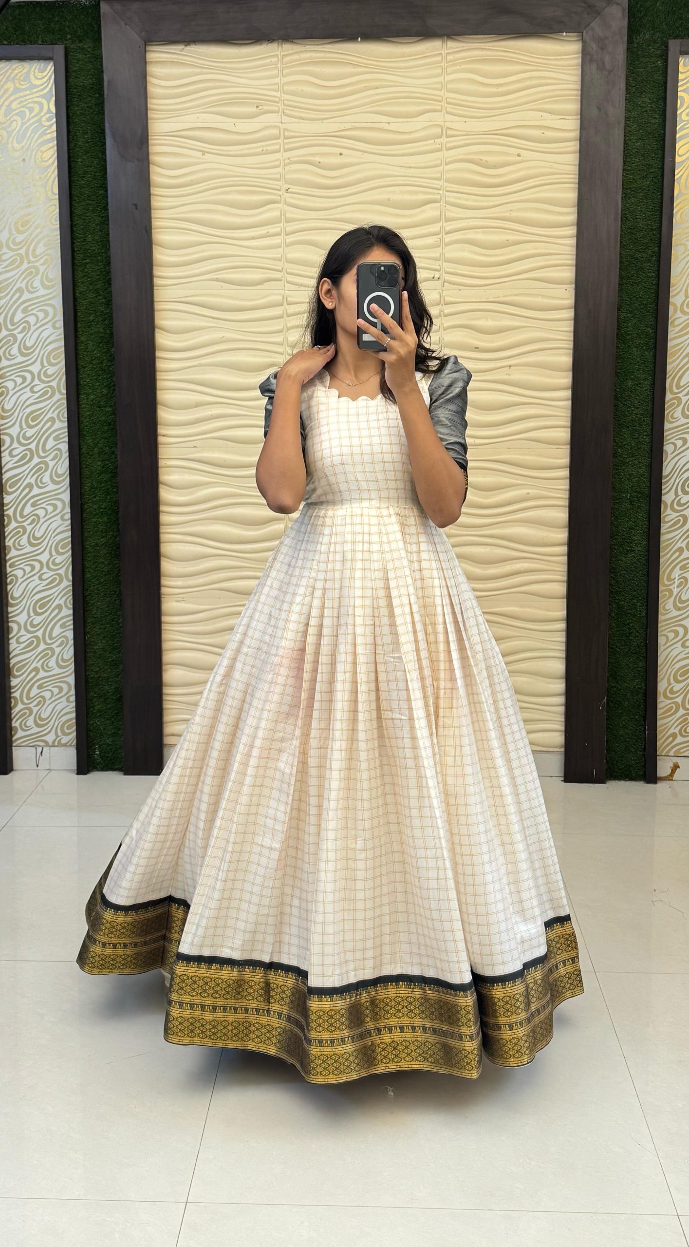 GOWN :- HEAVY COTTON SILK FABRIC WITH Jecared Border along with FULL INNER